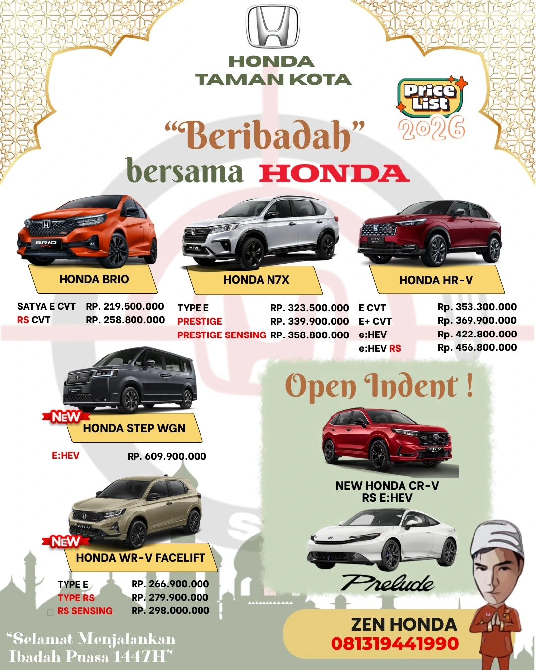 Silahkan menghubungi kami untuk pemesanan atau pembelian mobil Honda Anda. Kami akan segera menghubungi Anda.